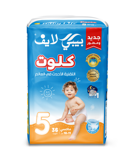بيبي لايف حفاضات اطفال كلوت مقاس (5) * 36 فوطة